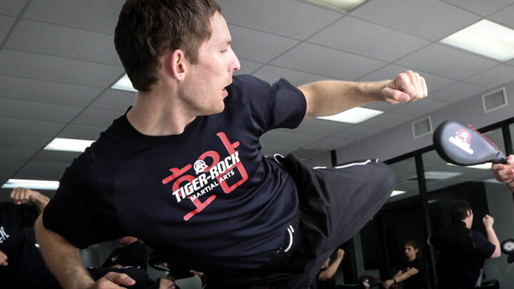 Taekwondo emphasizes head height kicks, jumping kicks, spinning kicks, side kicks, and striking. A typical Tiger-Rock taekwondo lesson will include kicking drills, striking drills, and speed targets. These drills will help you improve your motor skills and flexibility.